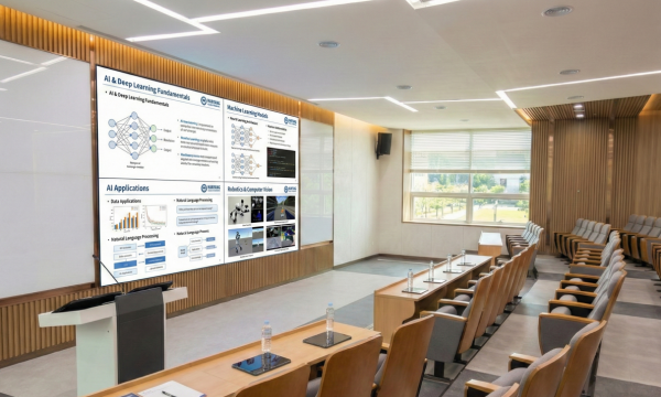 원클릭으로 실시간 인터칼리지 라이브 강의를 시작하세요! 디스플레이, 카메라, 오디오를 하나의 통합 인터페이스로 간편하게 제어하며, 최대 300명의 현장 교육을 지원합니다. 10기가 대역 로컬망을 이용하여 교수님과 학생들이 캠퍼스 내 다른 공간에 있더라도 음성 및 영상을 끊김 없이 연결하여 매끄러운 강의 환경을 제공합니다. 물론 외부 ZOOM, WEBEX와 같은 원격 강의 플랫폼도 함께 지원합니다.